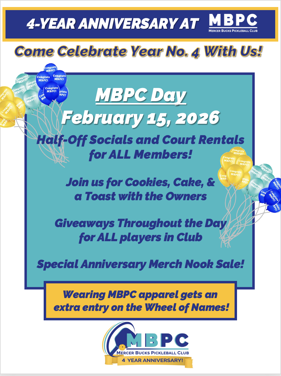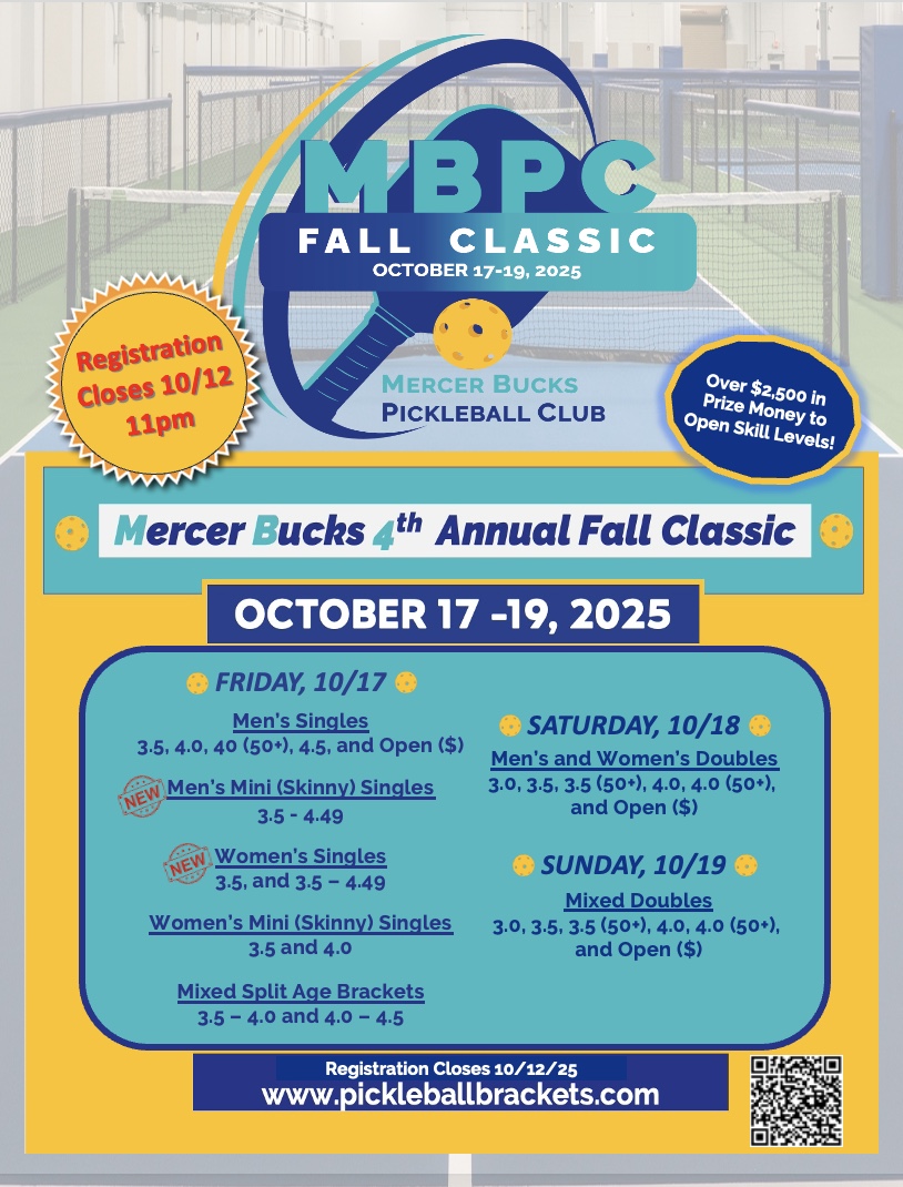 At Mercer Bucks Pickleball Club, our mission is to build a social and fitness community through the game of Pickleball. Whether you are an experienced player or new to the game, come join us.