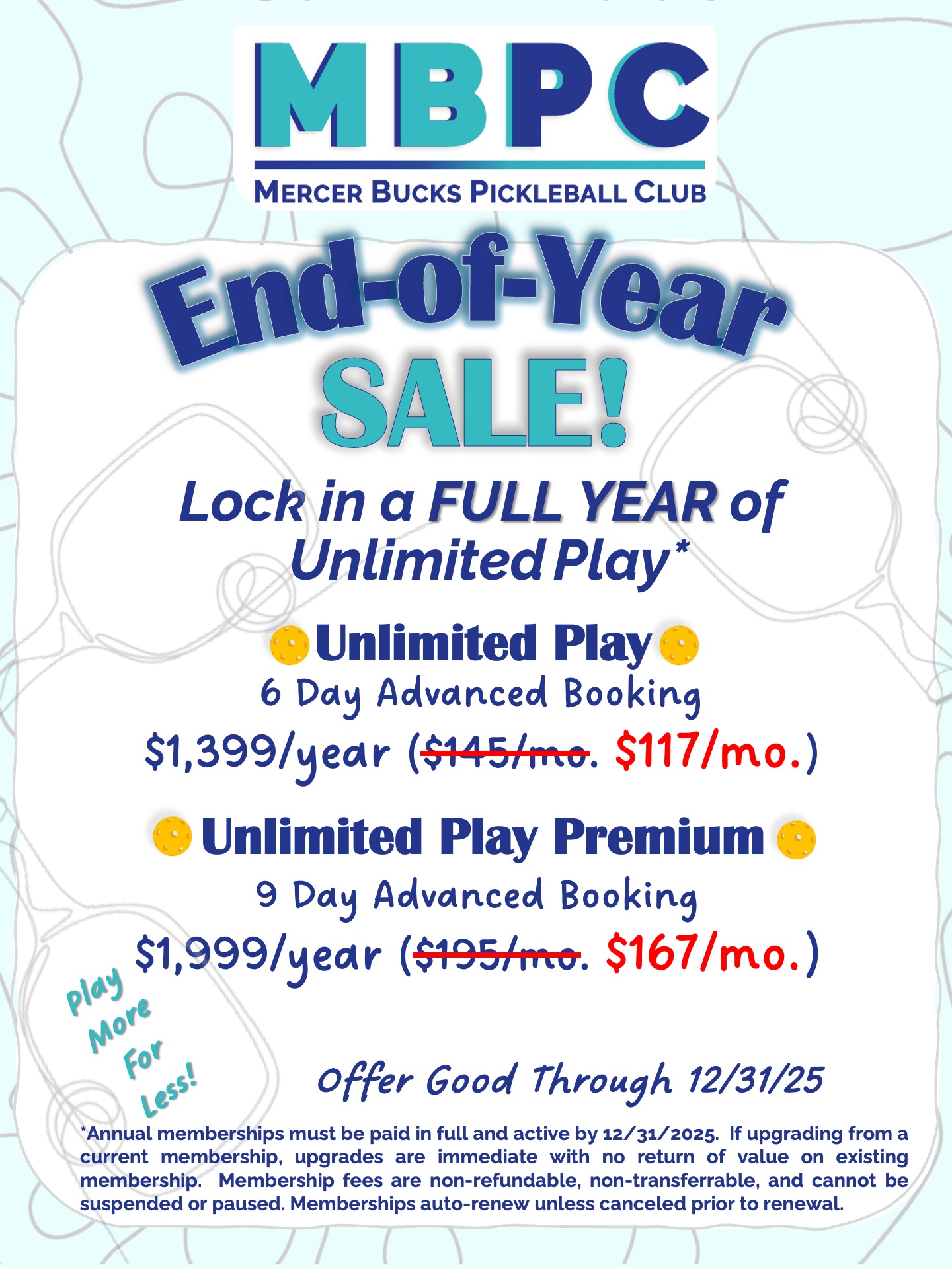 Dan has been playing racquet/paddle sports since 1976.  After many years as a competitive / tournament racquetball player and instructor, Dan became the Pennington Ewing Athletic Club (PEAC) racquetball club-pro in 2015. Dan subsequently helped create the Pickleball program at PEAC which started out with taped lines, temporary nets and two courts– ultimately expanding to 4 courts. During his time at PEAC overseeing the Pickleball program, Dan taught over 200 players the “Basics of Pickleball” as well as Intermediate and Advanced instruction in both individual and group settings. As a 4.0 player, Dan organized round robin, league and tournament play.  Dan looks forward to joining Mercer Bucks Pickleball Club and continuing to instruct players of all levels and advancing this great sport.